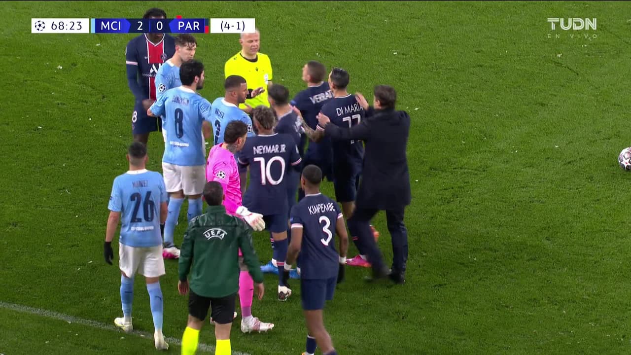 Ángel Di María (Paris Saint-Germain) ha recibido una tarjeta roja por pelearse.