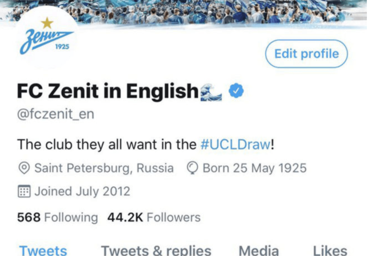 Con mucho humor, el equipo ruso cambió temporalmente la 'bio' de su cuenta de Twitter en inglés para poner: "El club que todos quieren en el sorteo de la Champions".