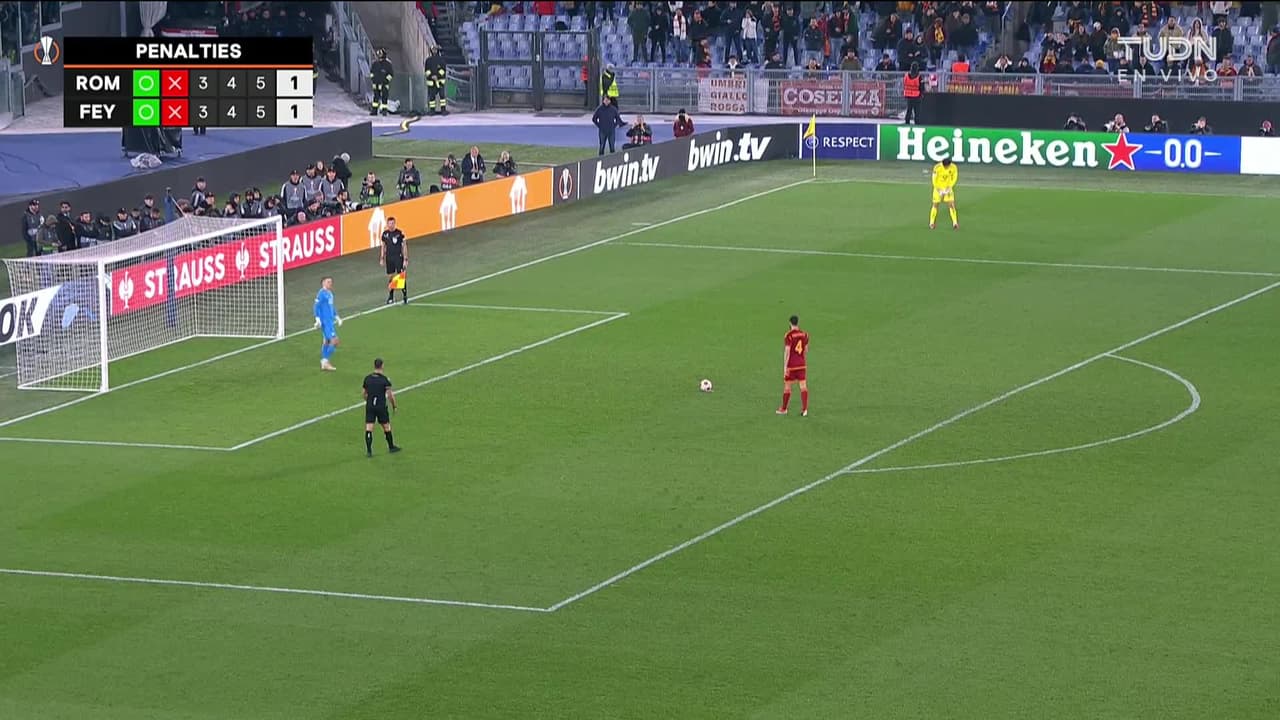 ¡Gol! AS Roma 1(2)| Feyenoord 1(1). Bryan Cristante (AS Roma) convirtió el penalti Disparo con la derecha.