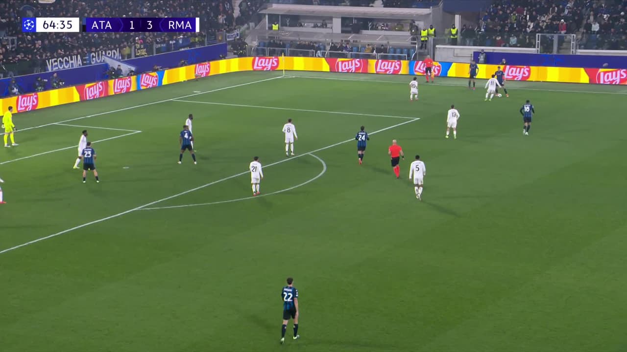 ¡Gol! Atalanta 2| Real Madrid 3. Ademola Lookman (Atalanta) Disparo con la derecha desde el lado izquierdo dentro del área.