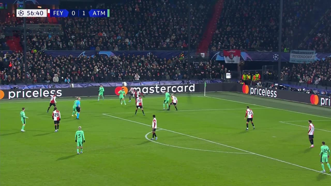 ¡Gol! Feyenoord 0| Atlético de Madrid 2. Mario Hermoso (Atlético de Madrid) zurdazo desde el lado izquierdo dentro del área.