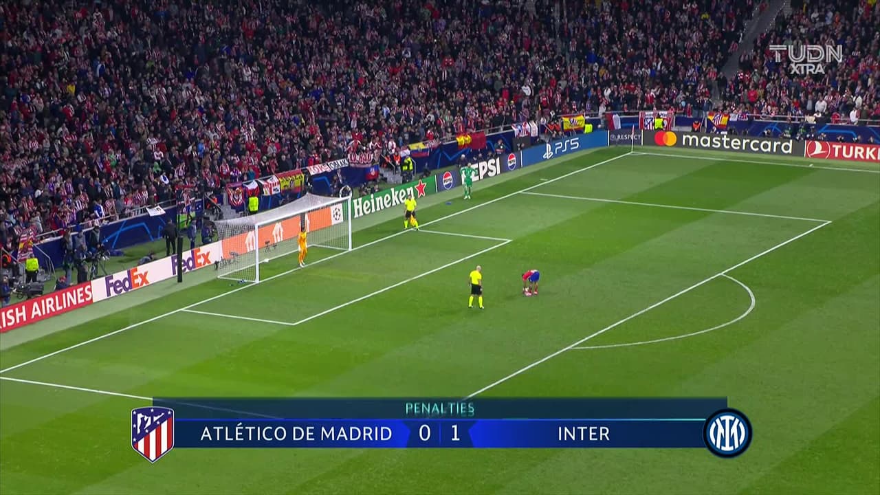 ¡Gol! Atlético de Madrid 2(1)| Internazionale 1(1). Memphis Depay (Atlético de Madrid) convirtió el penalti Disparo con la derecha.