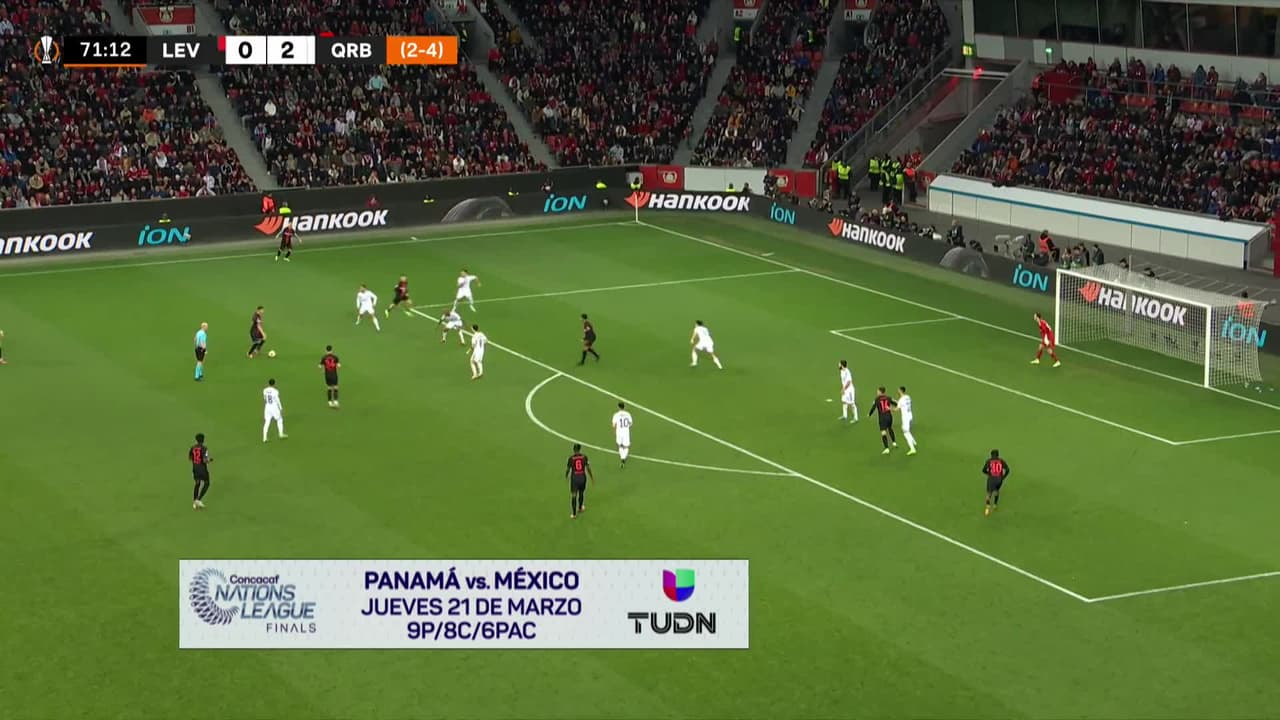 ¡Gol! Bayer 04 Leverkusen 1| FK Qarabag 2. Jeremie Frimpong (Bayer 04 Leverkusen) Disparo con la derecha desde el lado derecho dentro del área.