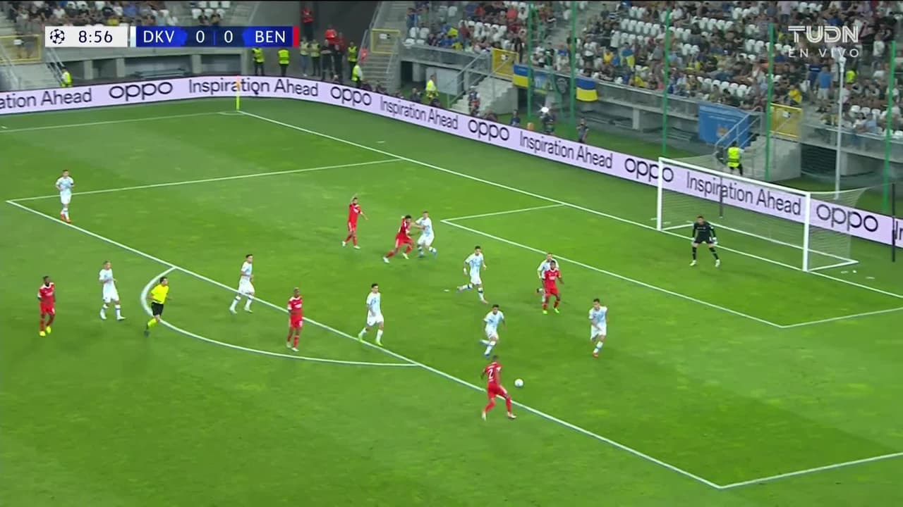 ¡Gol! Dynamo Kyiv 0| Benfica 1. Gilberto (Benfica) Disparo con la derecha desde el lado derecho dentro del área por arriba. Asistencia de João Mário.