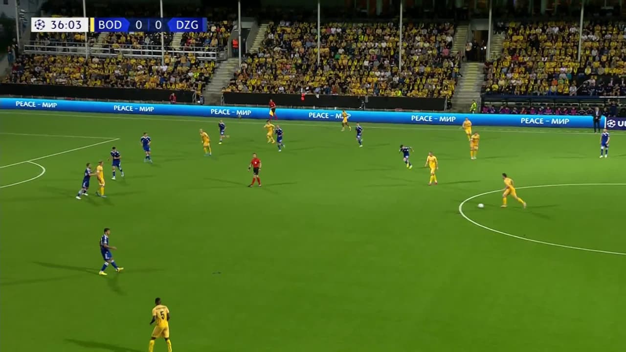 ¡Gol! Bodø/Glimt 1| Dinamo Zagreb 0. Amahl Pellegrino (Bodø/Glimt) disparo de cabeza desde el centro del área al centro de la portería. Asistencia de Joel Mvuka con un centro al área.