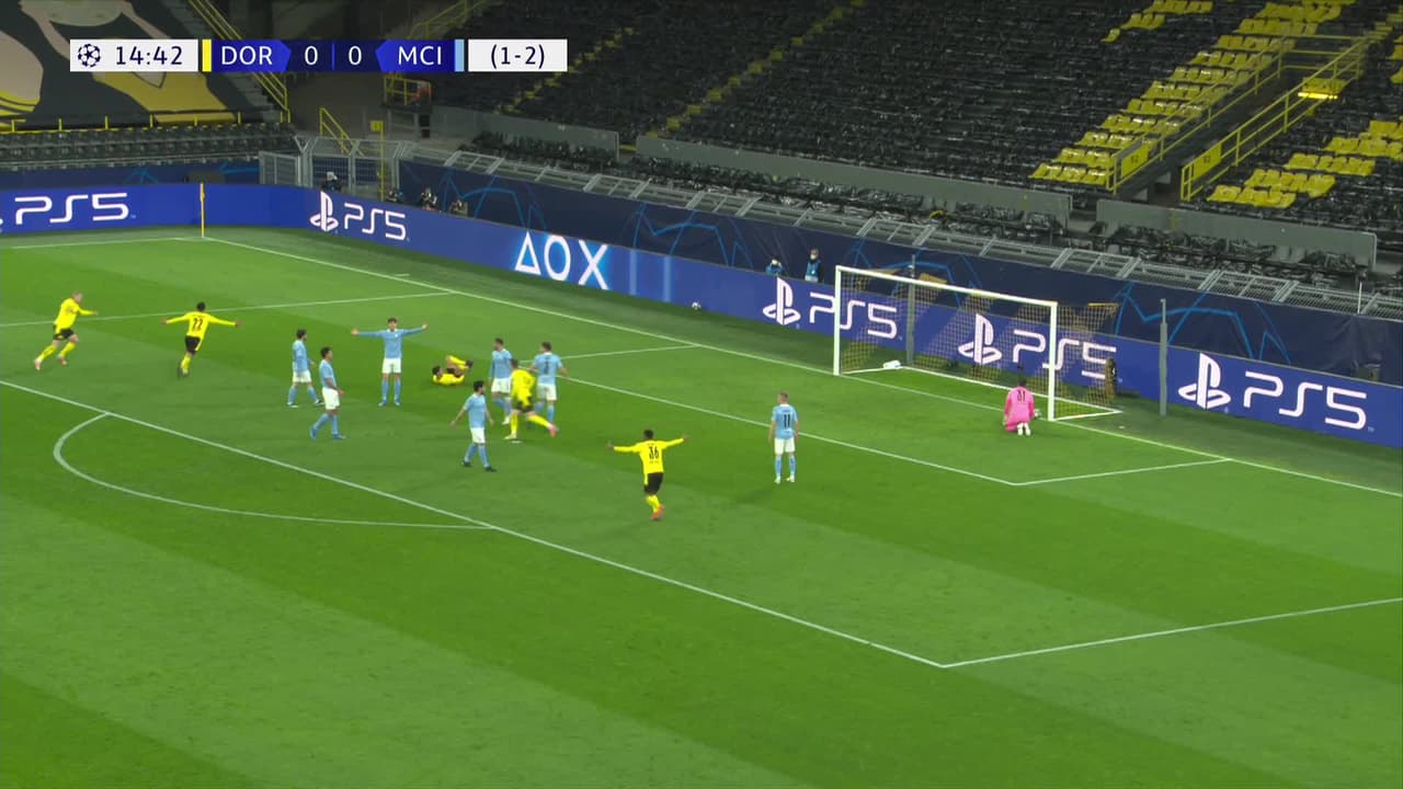 ¡Gol! Borussia Dortmund 1| Manchester City 0. Jude Bellingham (Borussia Dortmund) Disparo con la derecha desde el centro del área por arriba.