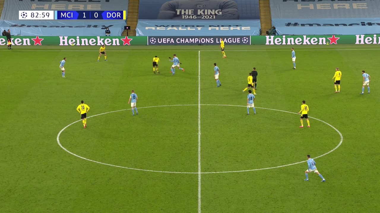 ¡Gol! Manchester City 1| Borussia Dortmund 1. Marco Reus (Borussia Dortmund) Disparo con la derecha desde el centro del área por el lado derecho de la portería. Asistencia de Erling Haaland.