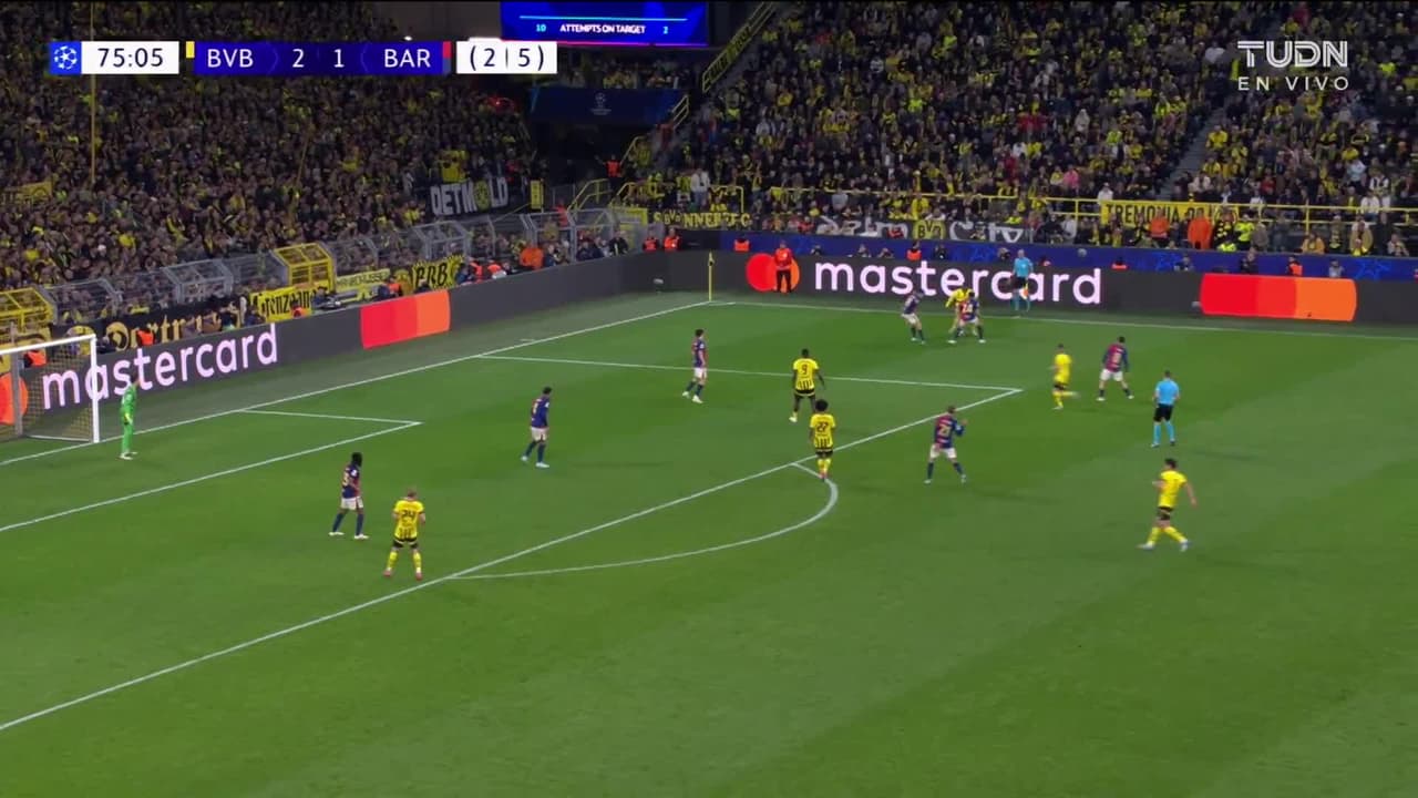 ¡Gol! Borussia Dortmund 3| FC Barcelona 1. Serhou Guirassy (Borussia Dortmund) zurdazo desde el centro del área.
