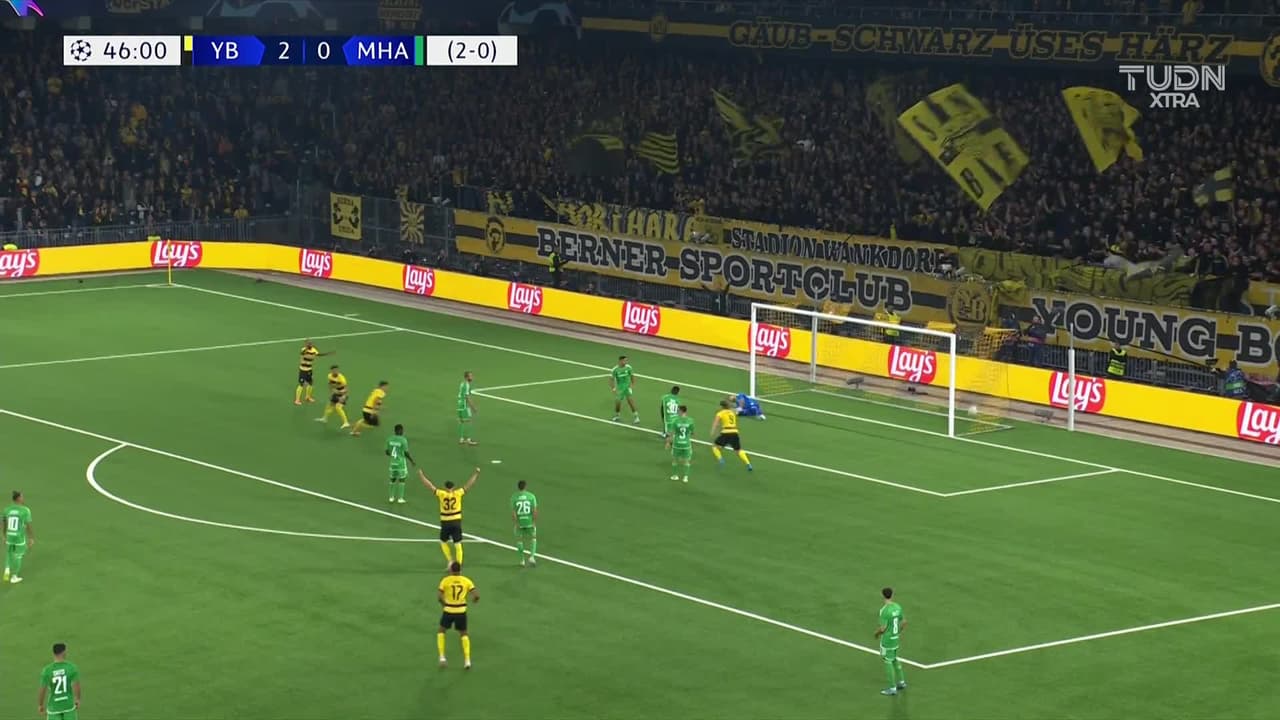 ¡Gol! BSC Young Boys 3| Maccabi Haifa 0. Filip Ugrinic (BSC Young Boys) zurdazo desde el centro del área por el centro del arco.