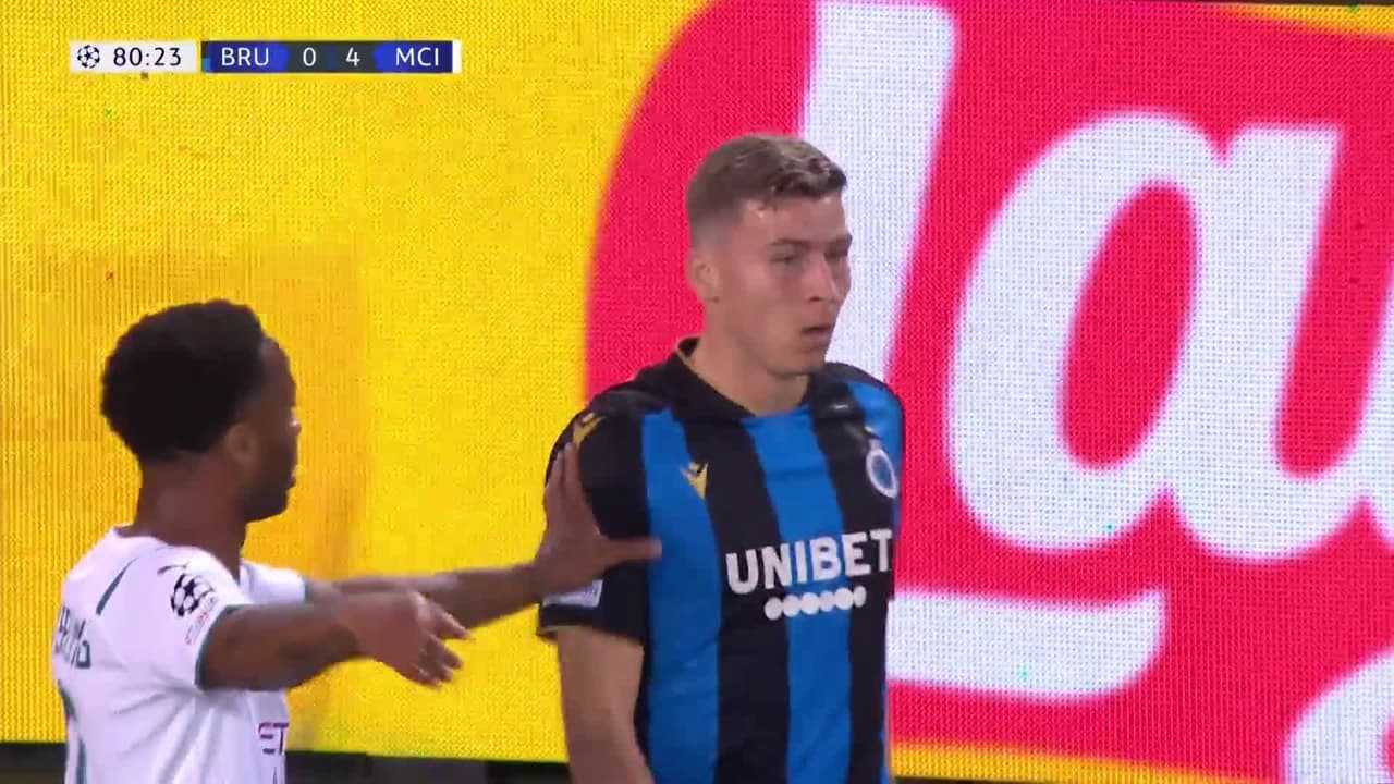 ¡Gol! Club Brugge 1| Manchester City 4. Hans Vanaken (Club Brugge) Disparo con la derecha desde el centro del área por el lado derecho de la portería. Asistencia de Ruud Vormer.