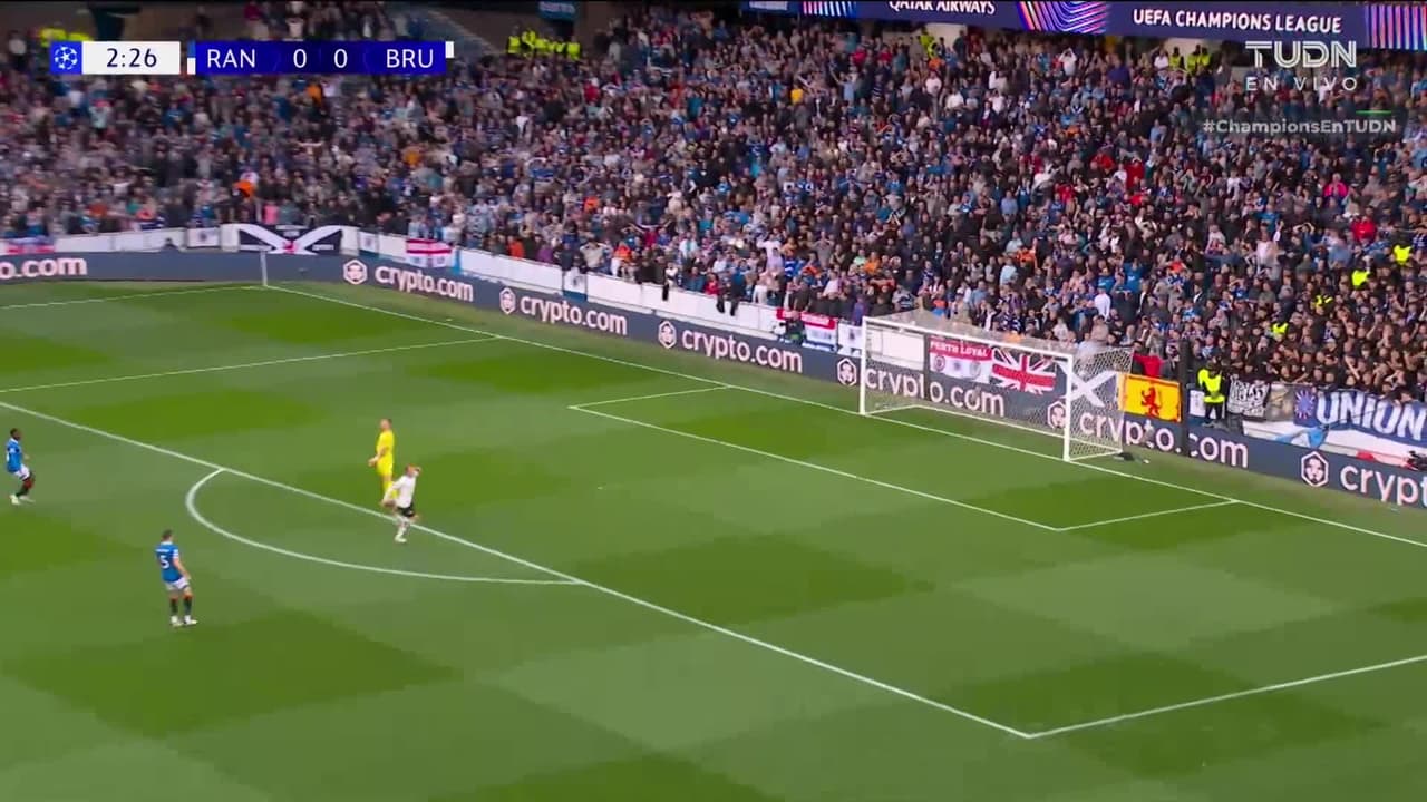 ¡Gol! Rangers 0| Club Brugge 1. Romeo Vermant (Club Brugge) Disparo con la derecha desde fuera del área.