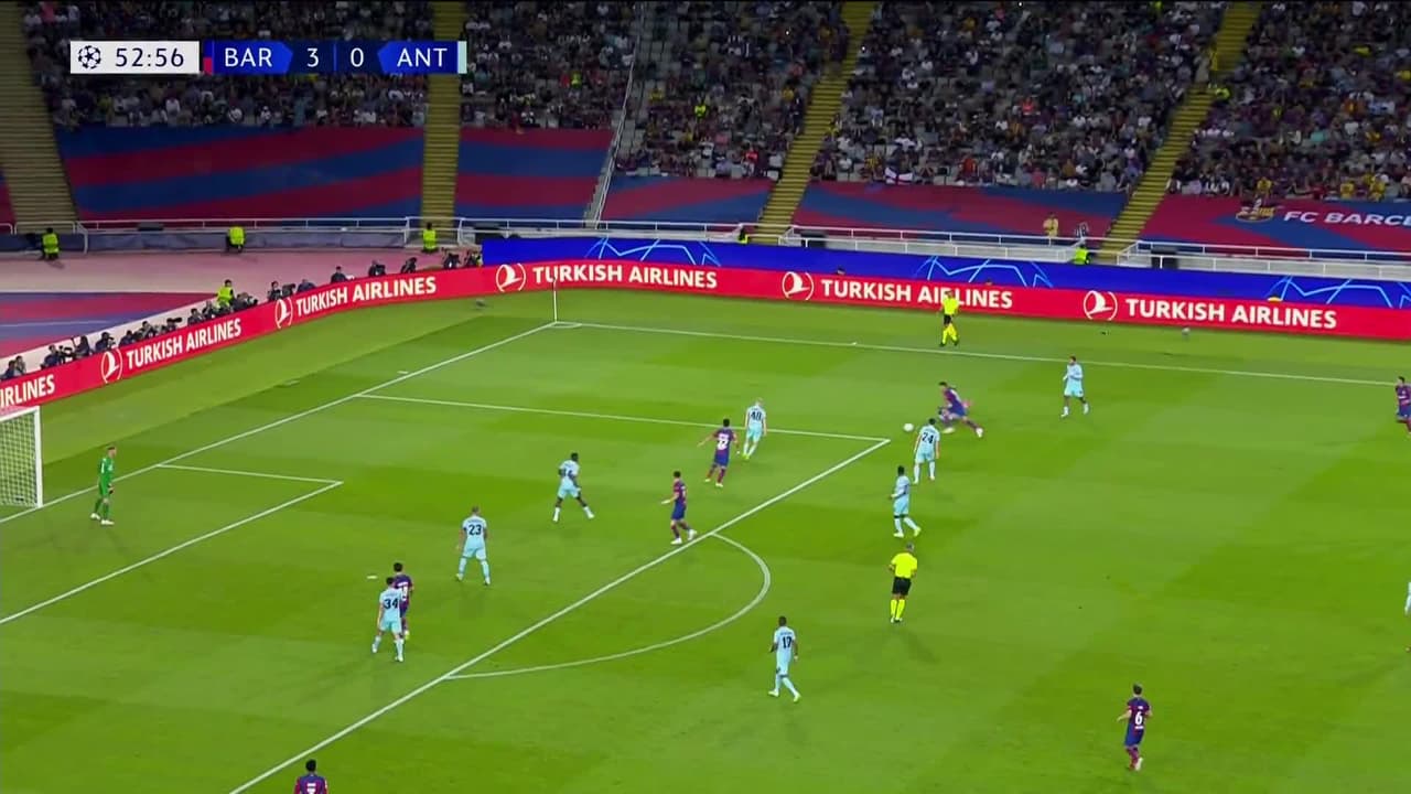 ¡Gol! FC Barcelona 4| Royal Antwerp 0. Gavi (FC Barcelona) zurdazo desde el centro del área al ángulo superior izquierdo. Asistencia de Robert Lewandowski.