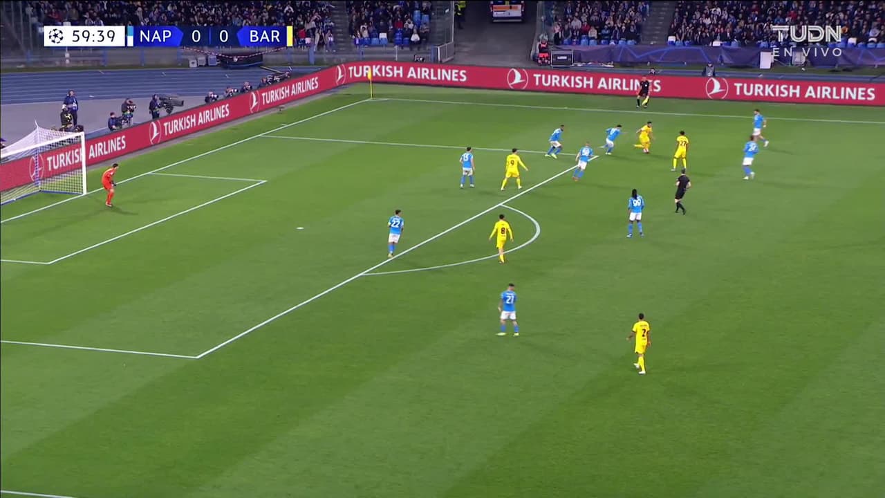 ¡Gol! Napoli 0| FC Barcelona 1. Robert Lewandowski (FC Barcelona) Disparo con la derecha desde el centro del área.