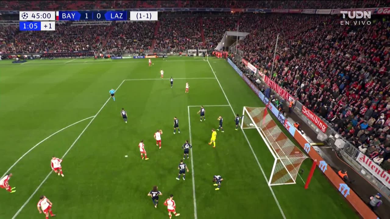 ¡Gol! FC Bayern München 2| Lazio 0. Thomas Müller (FC Bayern München) disparo de cabeza desde muy cerca disparo rastrero| junto al palo izquierdo. Asistencia de Matthijs de Ligt tras un saque de esquina.