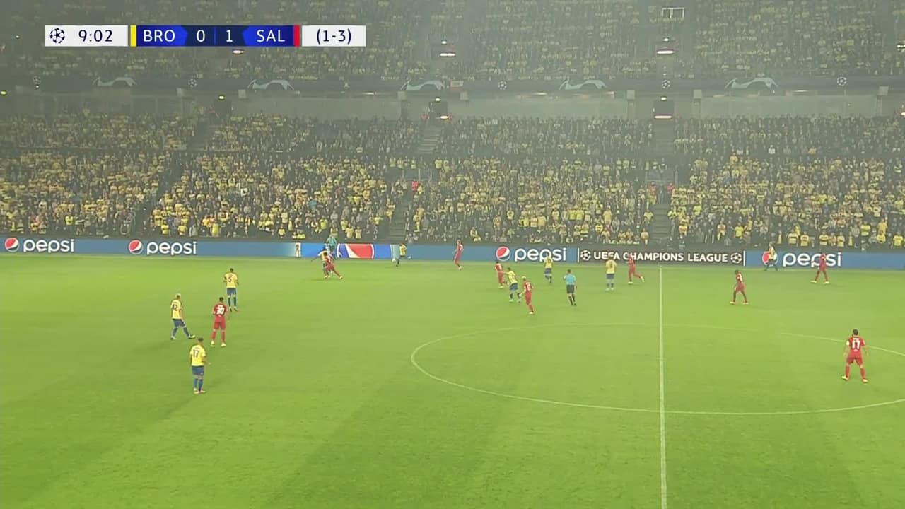 ¡Gol! Brøndby IF 0| FC Red Bull Salzburg 2. Brenden Aaronson (FC Red Bull Salzburg) Disparo con la derecha desde el centro del área al centro de la portería. Asistencia de Benjamin Sesko.