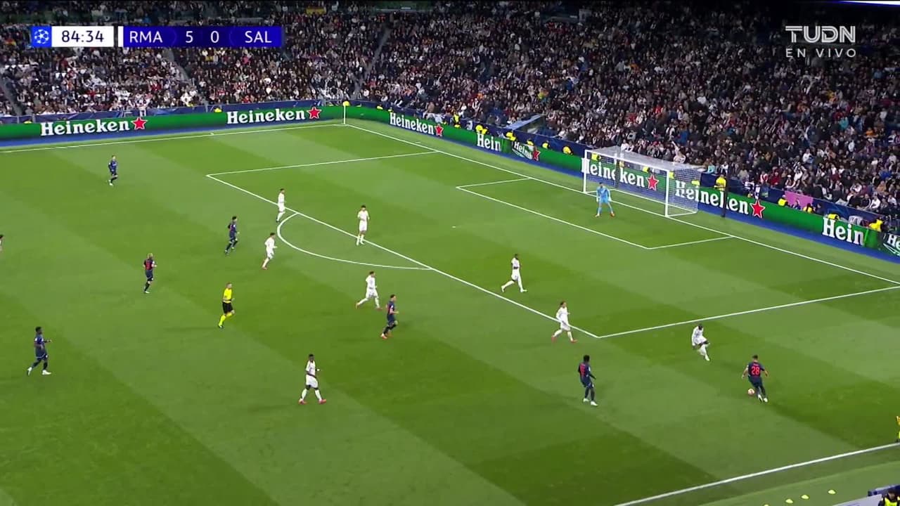 ¡Gol! Real Madrid 5| FC Red Bull Salzburg 1. Mads Bidstrup (FC Red Bull Salzburg) zurdazo desde el centro del área.