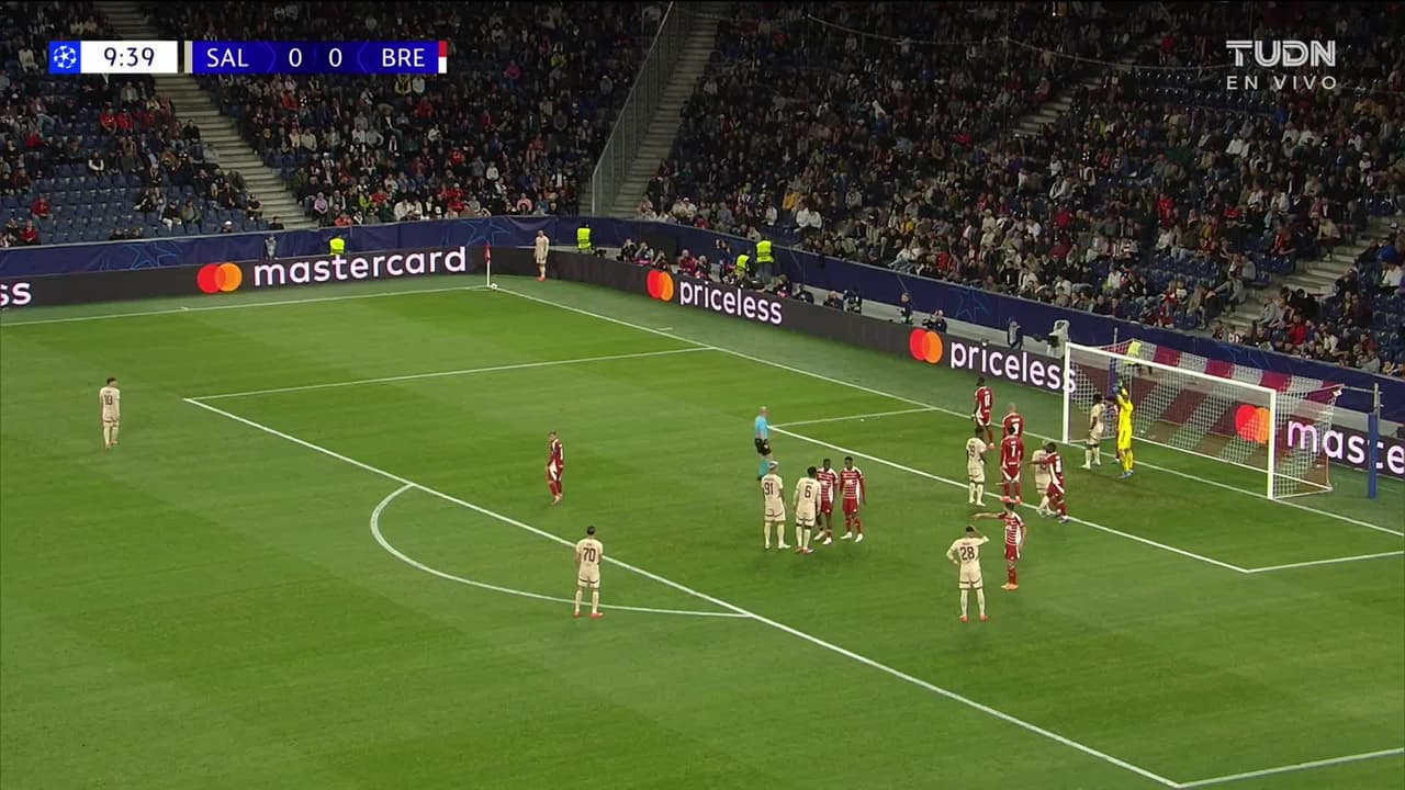 ¡Gol! FC Red Bull Salzburg 1| Brest 0. Samson Baidoo (FC Red Bull Salzburg) zurdazo a quemarropa desde el lado derecho tras un saque de esquina.