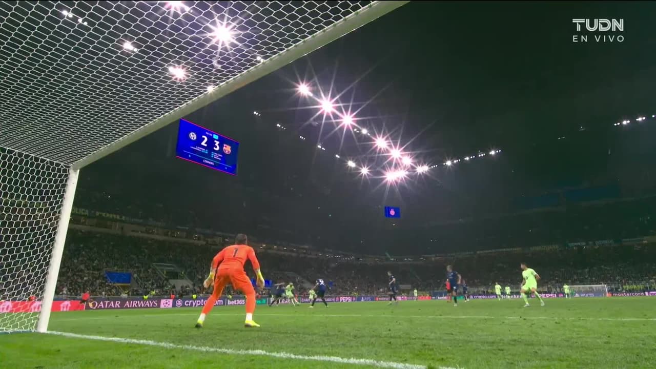 ¡Gol! Internazionale 3| FC Barcelona 3. Francesco Acerbi (Internazionale) Disparo con la derecha desde el centro del área.