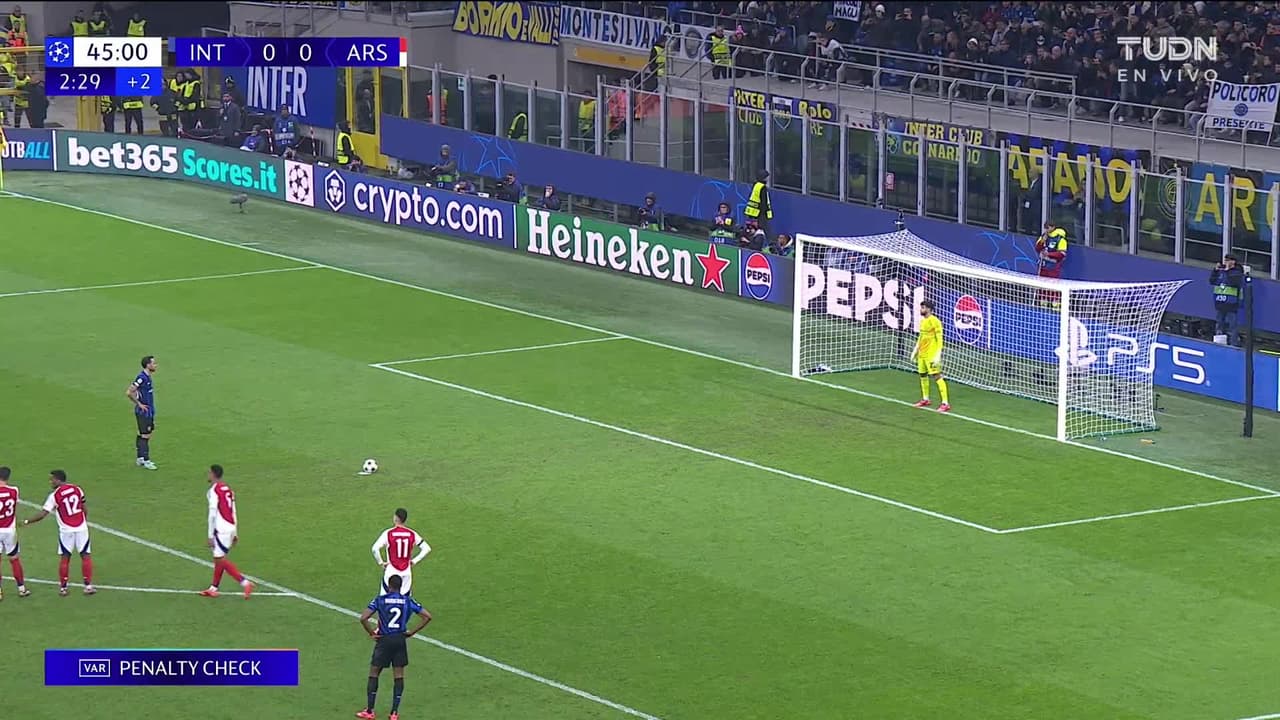 ¡Gol! Internazionale 1| Arsenal 0. Hakan Çalhanoglu (Internazionale) convirtió el penalti Disparo con la derecha.