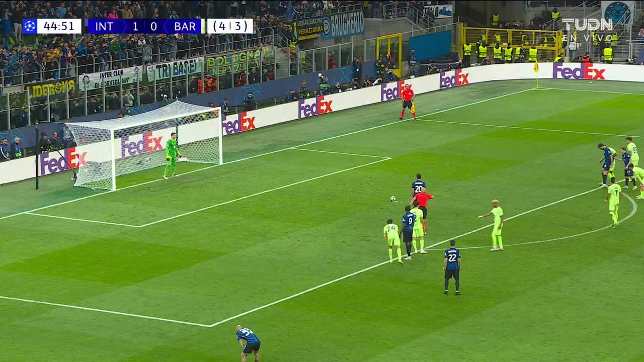 ¡Gol! Internazionale 2| FC Barcelona 0. Hakan Çalhanoglu (Internazionale) convirtió el penalti Disparo con la derecha.