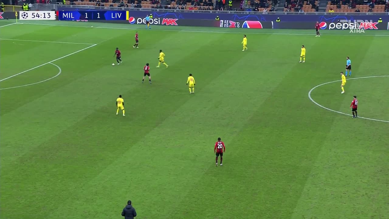 La defensa del AC Milan se equivocó de fea forma, perdieron la pelota y en el rebote Origi puso el tanto de la ventaja del cuadro inglés.