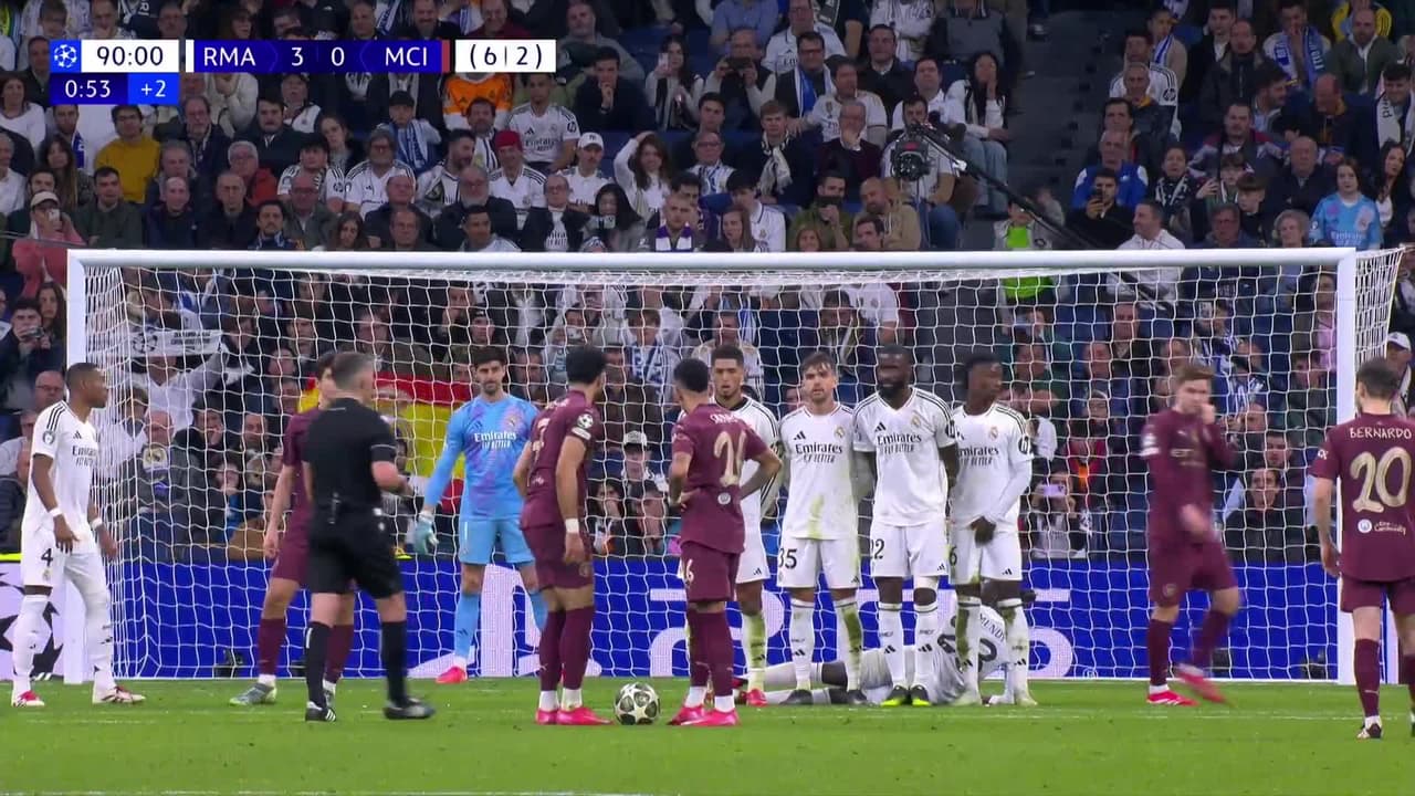 ¡Gol! Real Madrid 3| Manchester City 1. Nico González (Manchester City) zurdazo desde muy cerca tras el cobro de una falta.