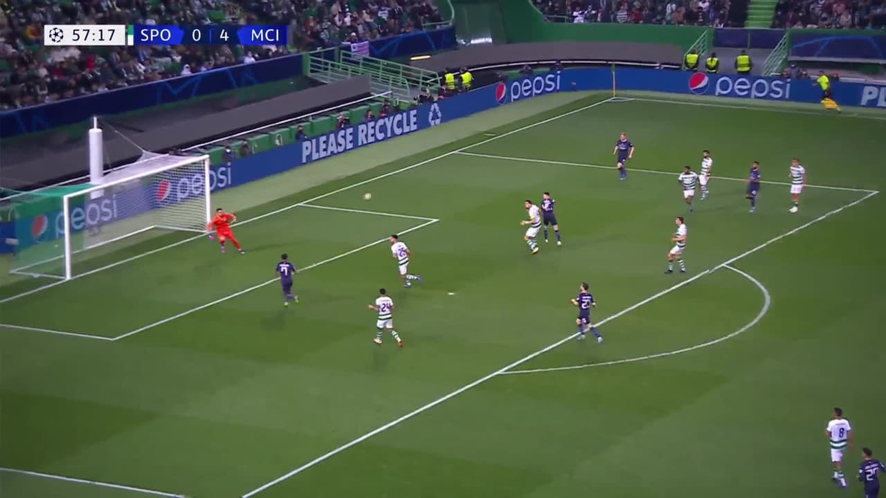 ¡Gol! Sporting Lisbon 0| Manchester City 5. Raheem Sterling (Manchester City) Disparo con la derecha desde fuera del área.