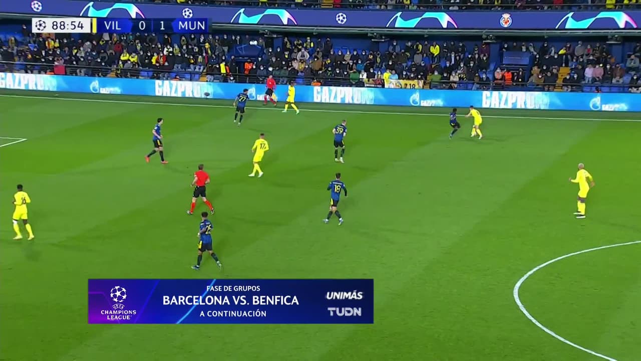 ¡Gol! Villarreal 0| Manchester United 2. Jadon Sancho (Manchester United) Disparo con la derecha desde el centro del área por arriba. Asistencia de Bruno Fernandes tras un contragolpe.