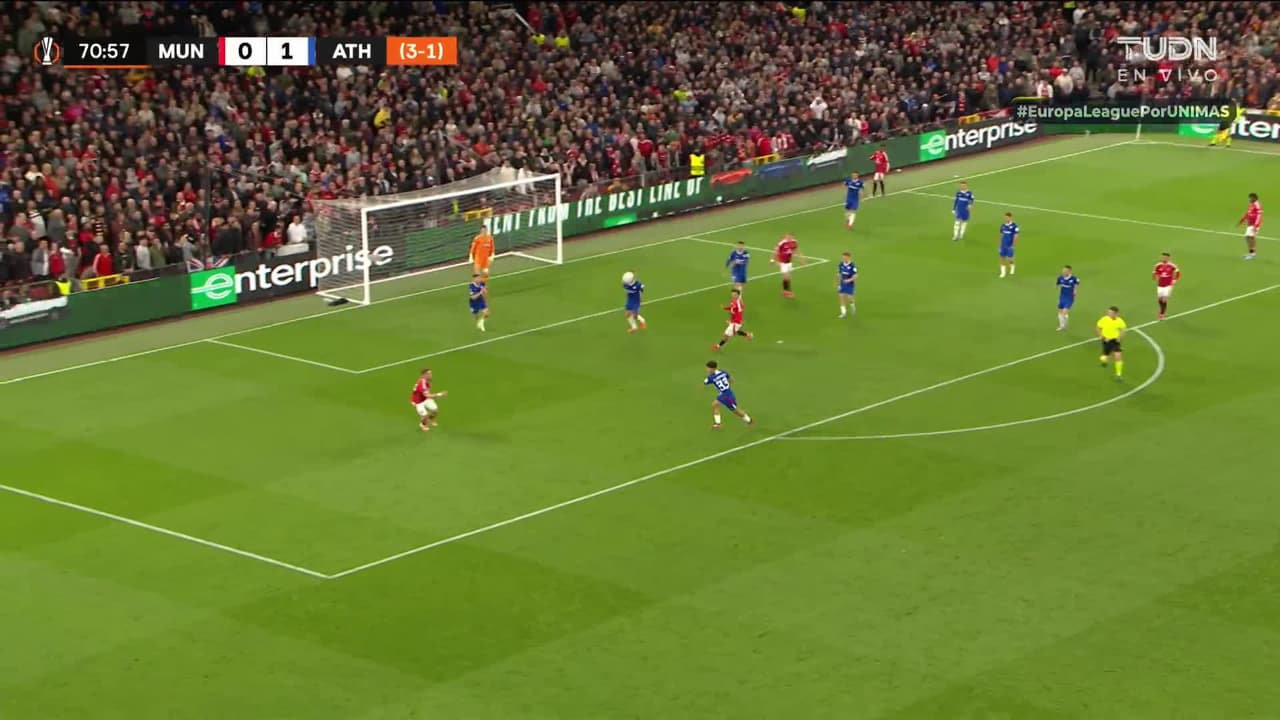 ¡Gol! Manchester United 1| Athletic Club 1. Mason Mount (Manchester United) Disparo con la derecha desde el centro del área.
