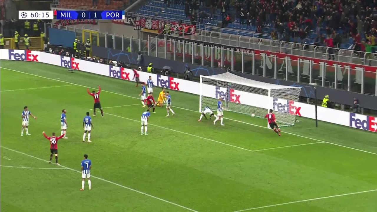¡Gol! Milan 1| FC Porto 1. Pierre Kalulu (Milan) zurdazo sin ángulo desde la izquierda tras el cobro de una falta.