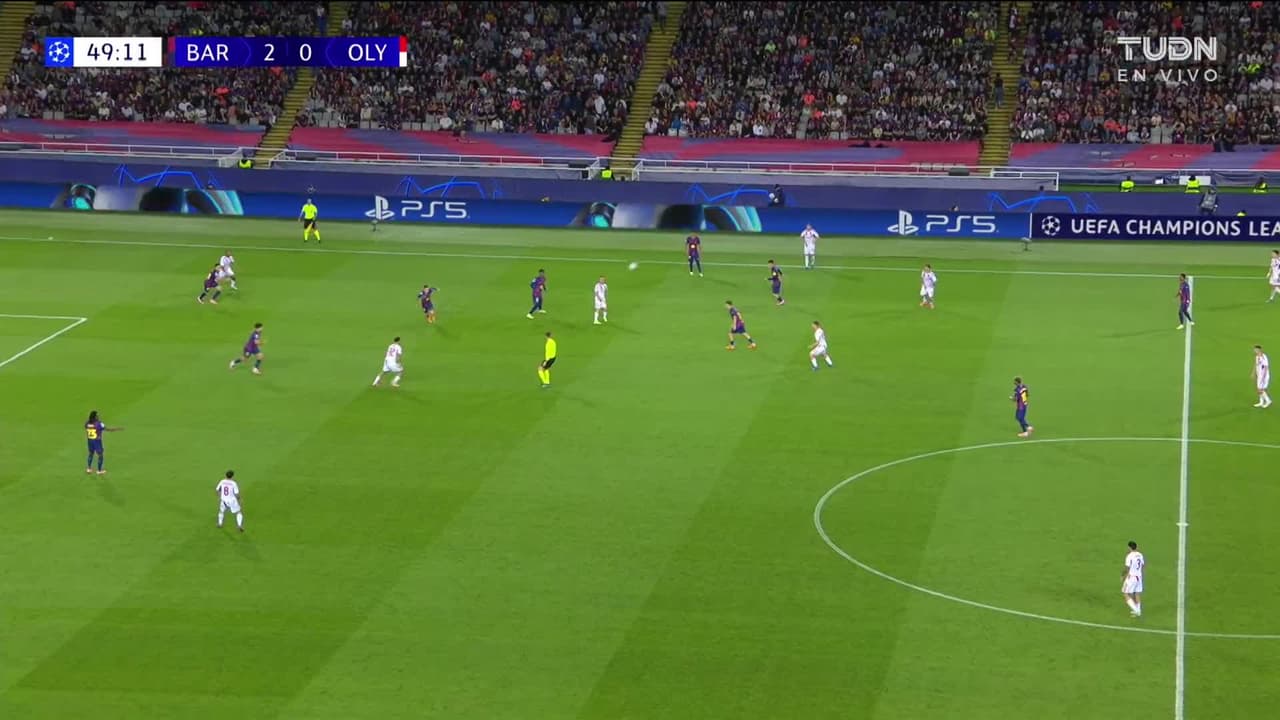 ¡Gol! FC Barcelona 2| Olympiakos 1. Ayoub El Kaabi (Olympiakos) disparo de cabeza desde el centro del área.