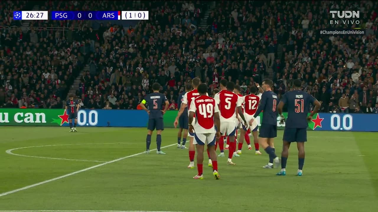 ¡Gol! Paris Saint-Germain 1| Arsenal 0. Fabián Ruiz (Paris Saint-Germain) zurdazo desde fuera del área tras el cobro de una falta.