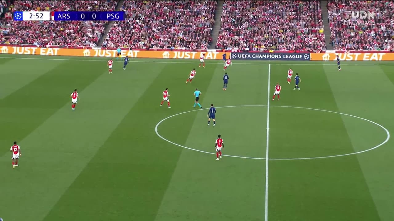 ¡Gol! Arsenal 0| Paris Saint-Germain 1. Ousmane Dembélé (Paris Saint-Germain) zurdazo desde el centro del área.