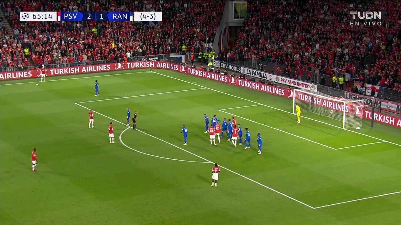 ¡Gol! PSV Eindhoven 3| Rangers 1. Luuk de Jong (PSV Eindhoven) disparo de cabeza desde el centro del área tras el cobro de una falta.