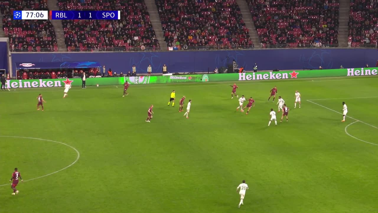 ¡Gol! RB Leipzig 2| Sporting Lisbon 1. Yussuf Poulsen (RB Leipzig) zurdazo desde muy cerca.