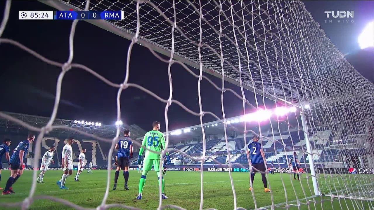 ¡Gol! Atalanta 0| Real Madrid 1. Ferland Mendy (Real Madrid) Disparo con la derecha desde fuera del área tras un saque de esquina.