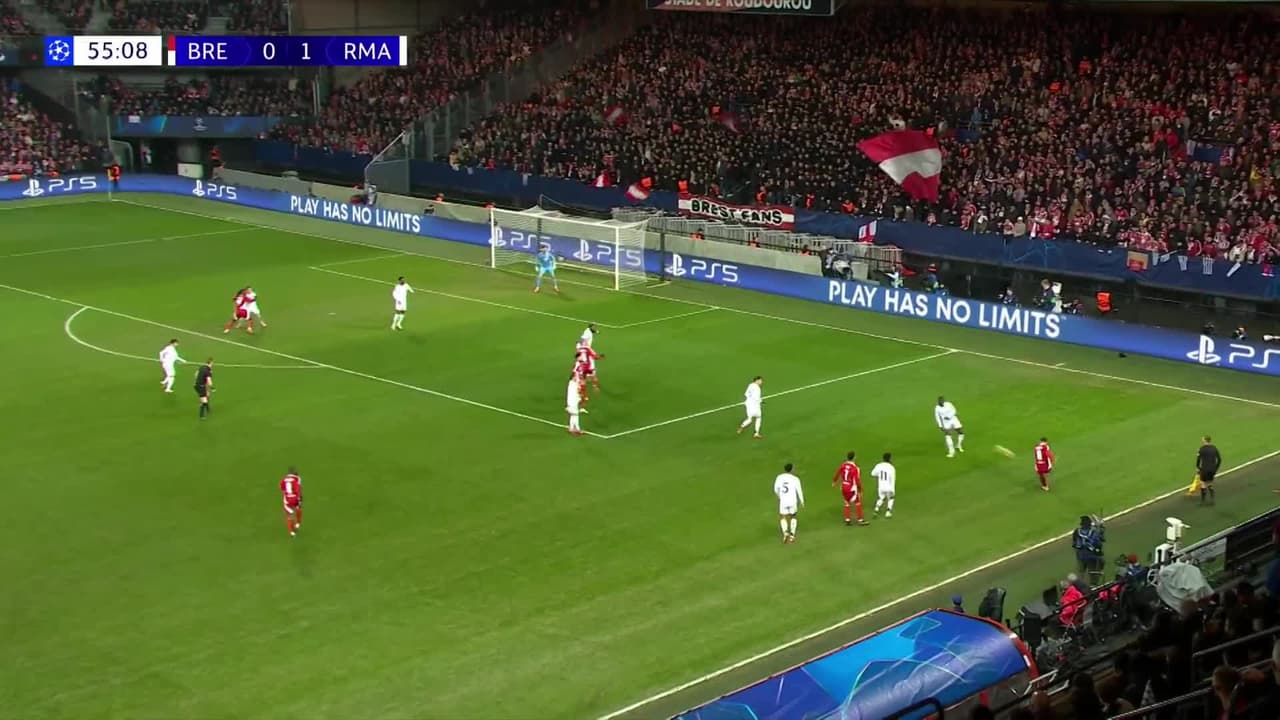 ¡Gol! Brest 0| Real Madrid 2. Jude Bellingham (Real Madrid) Disparo con la derecha desde el centro del área.