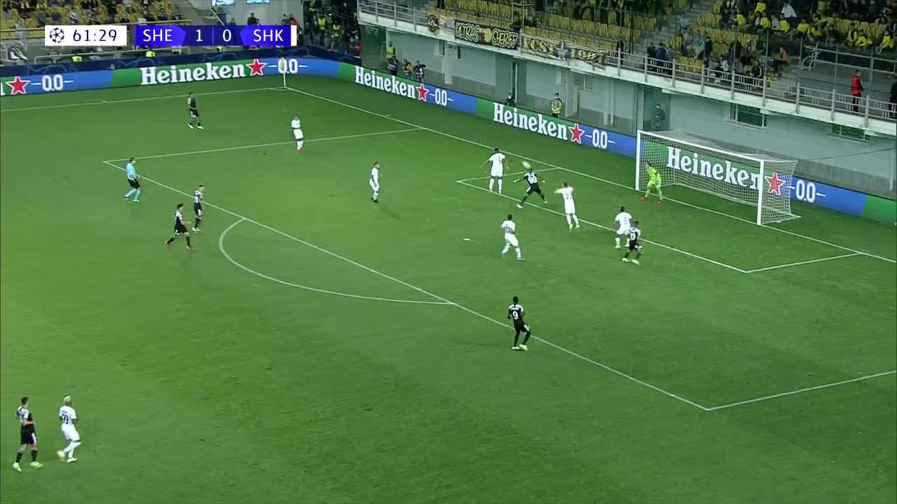 ¡Gooooool! Sheriff Tiraspol 2| Shakhtar Donetsk 0. Momo Yansane (Sheriff Tiraspol) remate de cabeza desde el centro del área por bajo| junto al palo izquierdo. Asistencia de Cristiano con un centro al área.