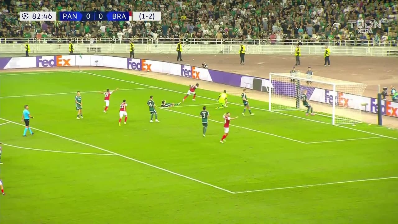 ¡Gol! Panathinaikos 0| Sporting Braga 1. Bruma (Sporting Braga) Disparo con la derecha desde el lado izquierdo dentro del área.