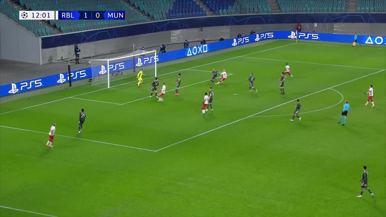 ¡Gol! RB Leipzig 2| Manchester United 0. Amadou Haidara (RB Leipzig) Disparo con la derecha desde el centro del área.
