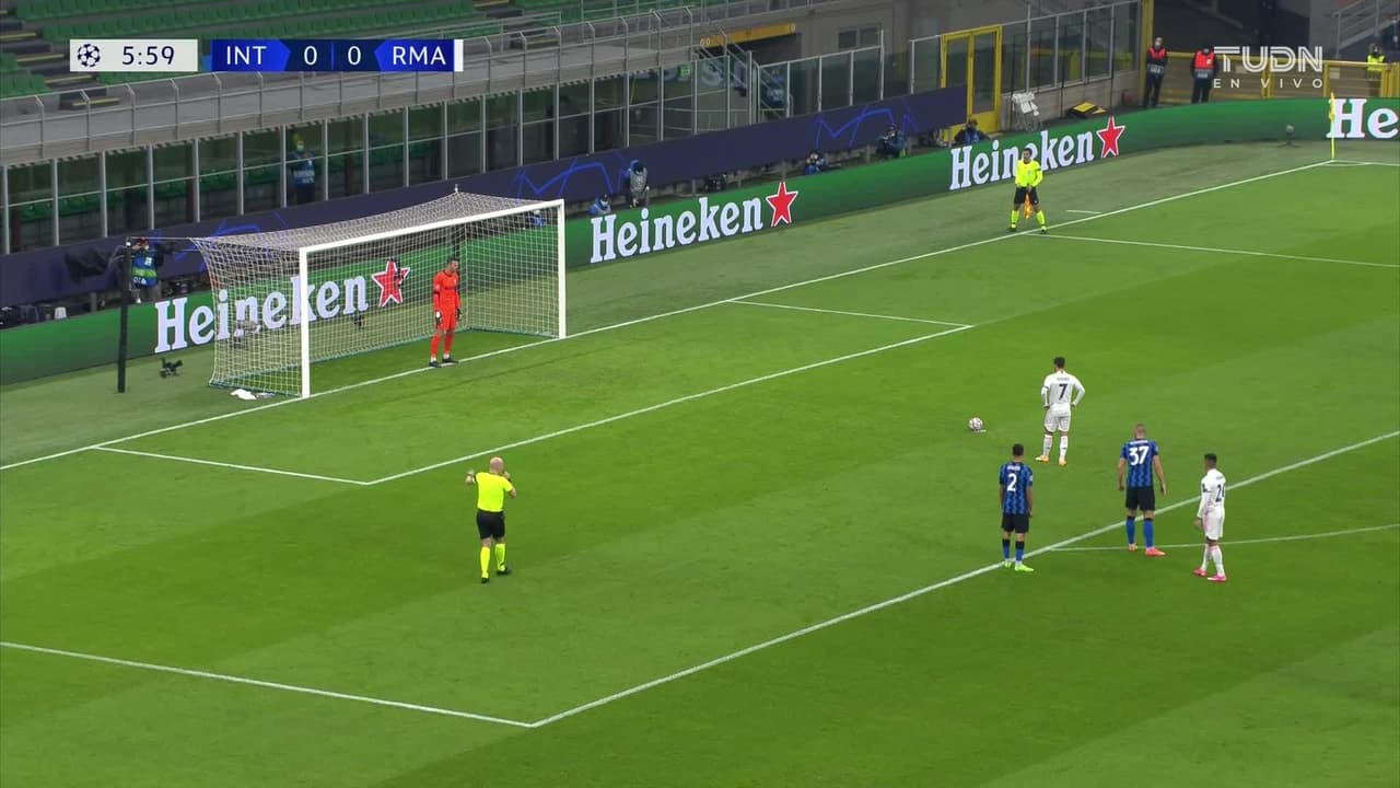¡Gol! Internazionale 0| Real Madrid 1. Eden Hazard (Real Madrid) convirtió el penalti Disparo con la derecha por el lado derecho de la portería.