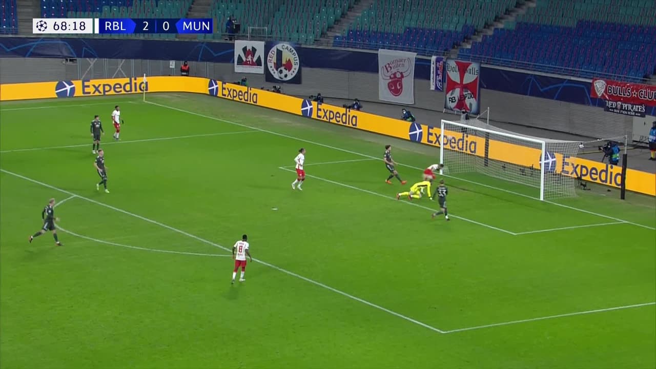 ¡Gol! RB Leipzig 3| Manchester United 0. Justin Kluivert (RB Leipzig) Disparo con la derecha desde el centro del área al centro de la portería. Asistencia de Christopher Nkunku.