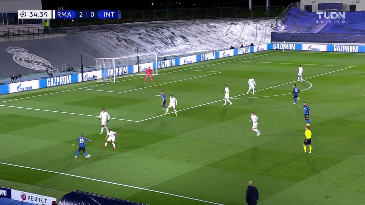 ¡Gol! Real Madrid 2| Internazionale 1. Lautaro Martínez (Internazionale) Disparo con la derecha desde el centro del área disparo rastrero| junto al palo izquierdo. Asistencia de Nicolò Barella.