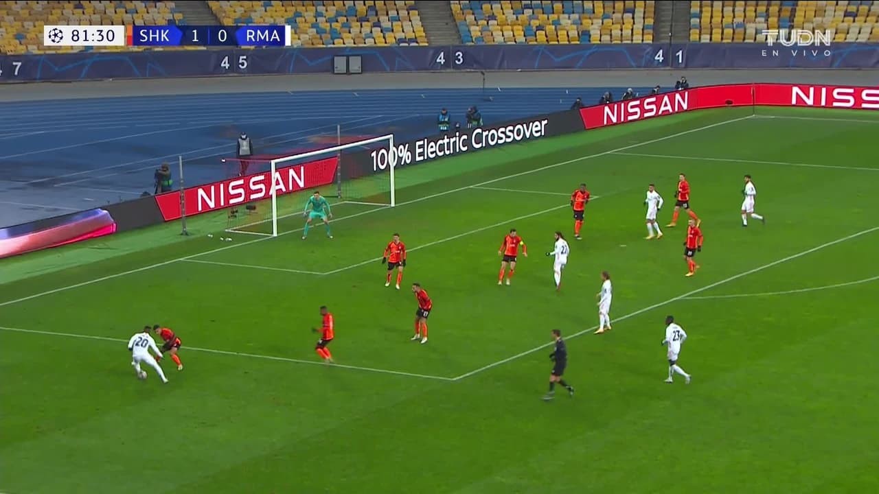 ¡Gol! Shakhtar Donetsk 2| Real Madrid 0. Manor Solomon (Shakhtar Donetsk) Disparo con la derecha desde el centro del área.