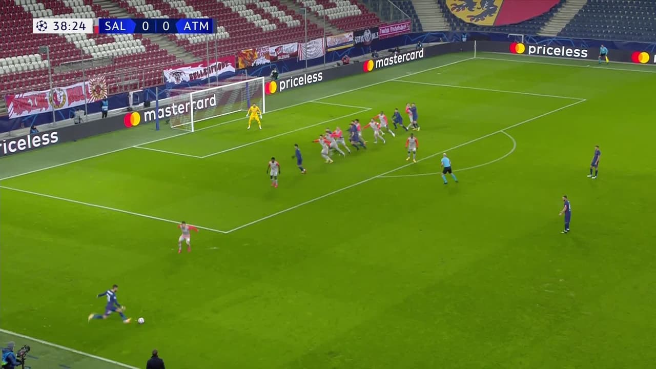 ¡Gol! FC Red Bull Salzburg 0| Atlético de Madrid 1. Mario Hermoso (Atlético de Madrid) con un tiro desde muy cerca por el centro del arco. Asistencia de Yannick Carrasco con un centro al área tras el cobro de una falta.