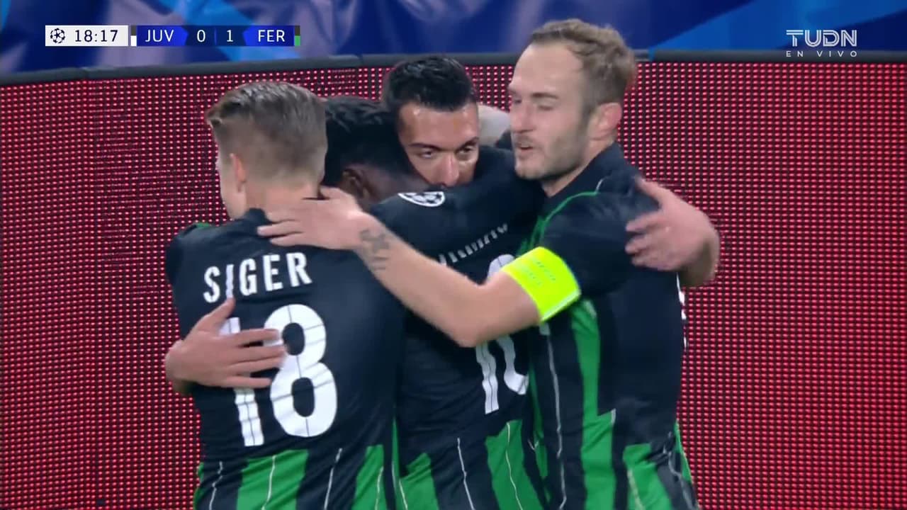 ¡Gol! Juventus 0| Ferencvárosi TC 1. Myrto Uzuni (Ferencvárosi TC) Disparo con la derecha desde el centro del área al centro de la portería.