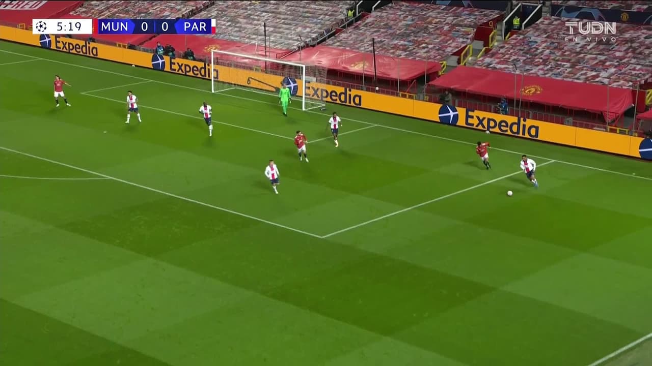 ¡Gol! Manchester United 0| Paris Saint-Germain 1. Neymar (Paris Saint-Germain) Disparo con la derecha a quemarropa desde el lado derecho.