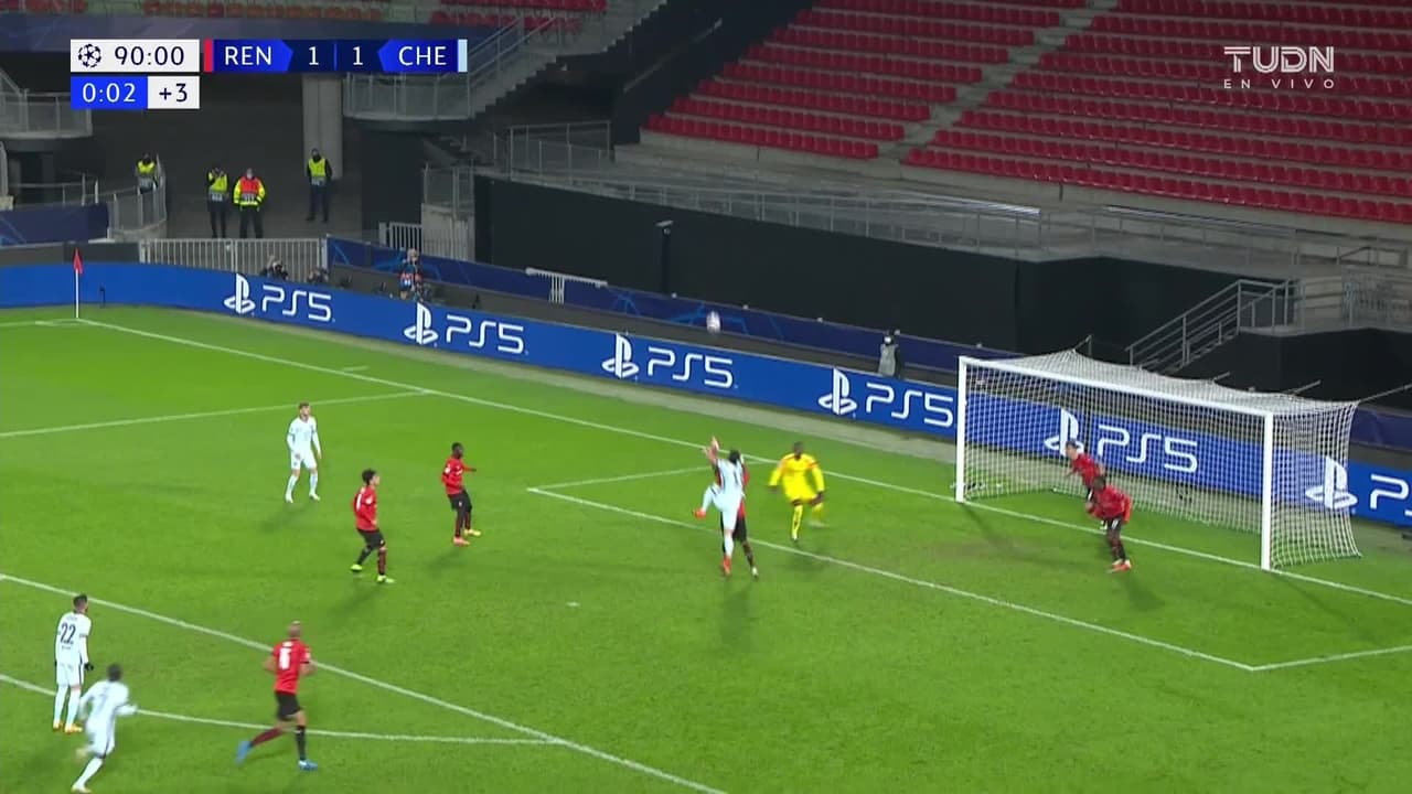 ¡Gol! Rennes 1| Chelsea 2. Olivier Giroud (Chelsea) disparo de cabeza desde el centro del área al ángulo superior izquierdo.