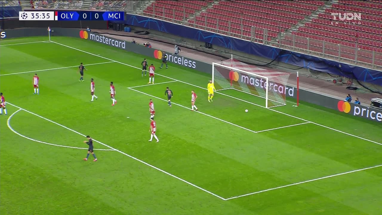 ¡Gol! Olympiakos 0| Manchester City 1. Phil Foden (Manchester City) zurdazo desde el centro del área al centro de la portería. Asistencia de Raheem Sterling.