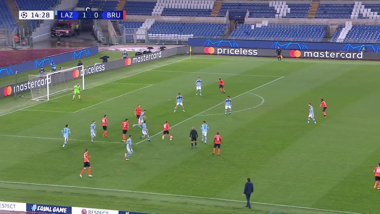 ¡Gol! Lazio 1| Club Brugge 1. Ruud Vormer (Club Brugge) Disparo con la derecha desde el centro del área.